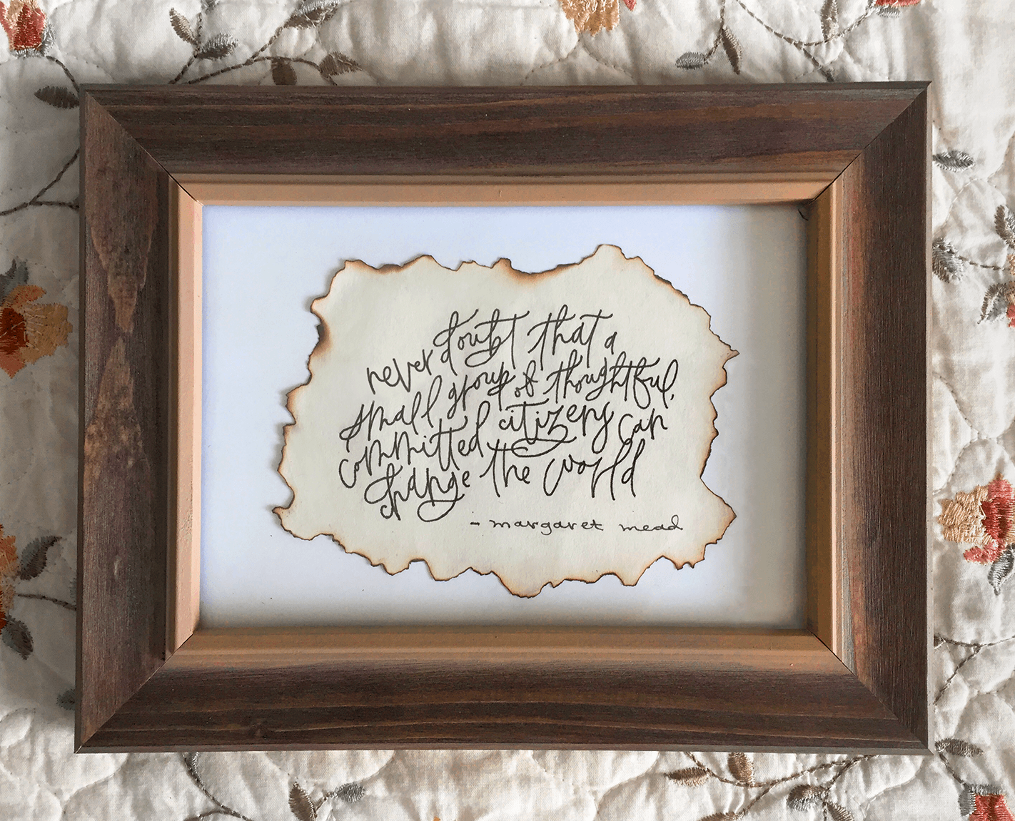 Drawn using a simple Sharpie Pen in my modern, minimal script style, I created this piece for my dad who is involved in local politics and social justice advocacy. This quote embodies what he values and what he has taught me.